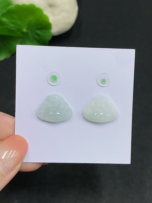 F35163493 Jadeite Blessed Bean Inlaid Earrings Non-Gold Inlaid Total Product Weight Approx. 2g