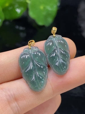 F25922428 Jadeite Leaf Pendants Sell as a Lot 18k Clasp Total Weight Approx. 2.63g