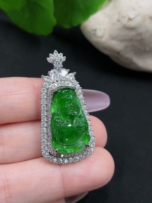 F30543164 Jadeite Buddha Pendant with 18k Gold Clasp, Total Weight Approximately 2.2g