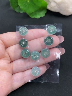 F33872377 Jadeite Auspicious Bean Inlay Set Sell as a Lot