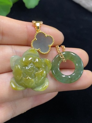 F1119973 Jadeite Inlaid Pendant Bulk Lot with Individual Surface Cracks (Gold Excluded)