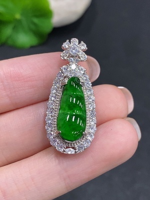 F34060480 Jadeite Lucky Bean Pendant with Non-Gold Setting, Total Weight Approximately 4.2g