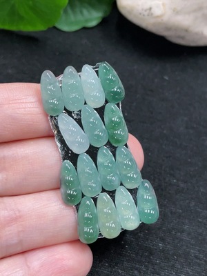 F33872402 Jadeite Lucky Bean Inlaid Pieces Sell as a Lot