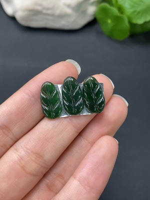 F12362281 Jadeite Inlaid Leaf Set (Three Pieces in One Lot)