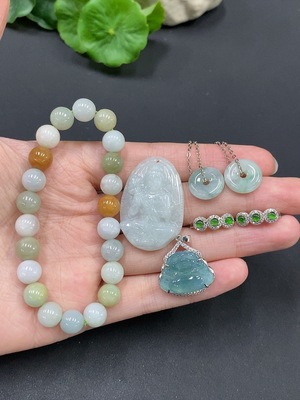 F14538498 Jadeite Pendant + Mounted Piece + Bracelet Non-Gold Inlaid