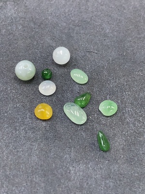 F24708099 Jadeite Leaf + Cabochon Sell as a Lot Non-Gold Mount
