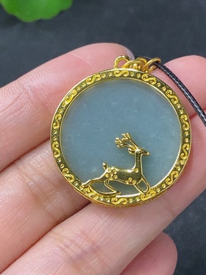 F3346216 Jadeite Pendant with Non-Gold Inlaid Bail