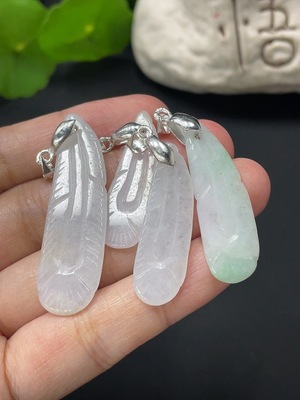 F30556475 Jadeite Pendant Feather Non-Gold Bezel