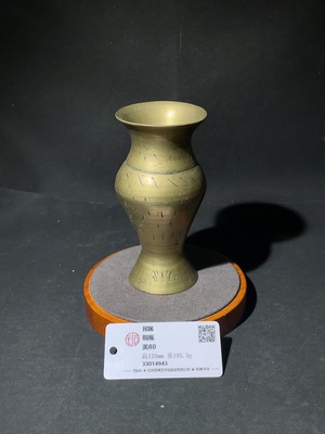 W34049519 Copper Bo Certified 80 Points Republic of China Era Brass Vase with Hand-Engraved Texture, 12.5cm in Height, 195g in Weight, Miscellaneous