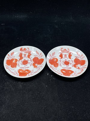 W39660834 Ceramic 2-Piece Set, Mint Condition, Color-Painted Plates from the Foreign Trade Era