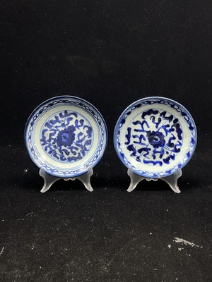 W40681447 Ceramic 2pcs Chipped Qing Blue and White Floral Plate