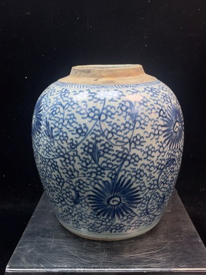 W37359717 Ceramic Blue and White Jar from the Late Qing Dynasty
