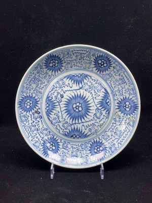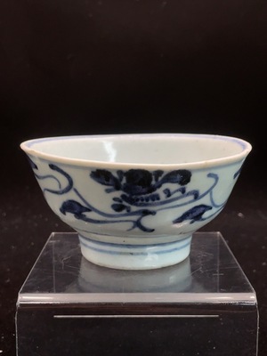 W25912993 Ming Dynasty Blue and White Floral Bowl with Ceramic Chip