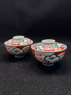W26986566 Ceramic 4-piece set, flawless, Export Period blue and white polychrome with gold-traced lidded bowls