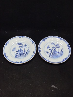 W39659626 Ceramic 2-piece Flaking Qing Blue and White Floral Plate