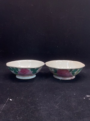 W37415874 Ceramic 2-piece set, mint condition, Republic of China export period painted bowls