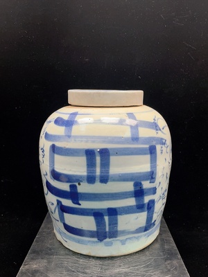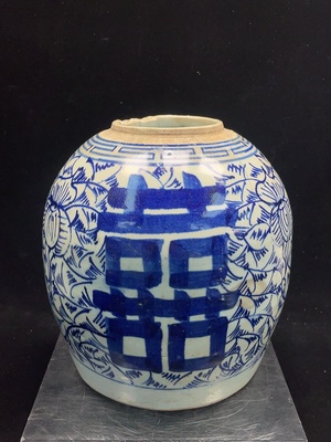 W37416558 Ceramics, 2 Pieces, Mint Condition, Republic of China Blue-and-White 'Double Happiness' Lidded Jar