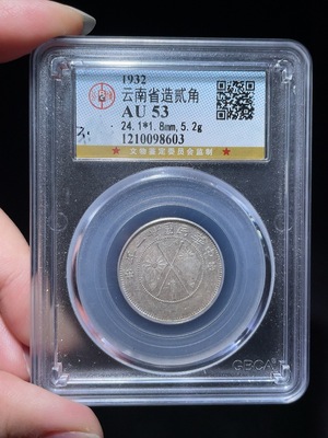 Q25841217 Silver Coin Yunnan Double Flag 20 Cents Silver Coin, GBCA AU53, with Original Luster and Sharp Strike