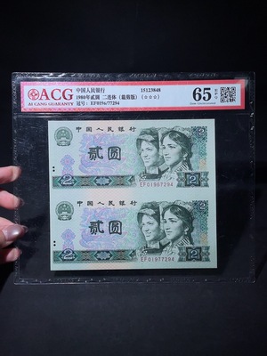 Q34987825 1980 Fourth Series RMB 2 Yuan Consecutive Serial Number Bill Cut Version Original Uncirculated Note Aicang Graded Paper Currency Well Preserved Standard Size