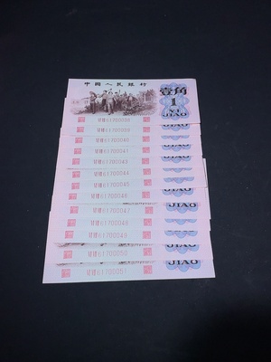Q38499546 Third Edition Rural One Jiao Banknote with Leopard Number Thirteen Pieces