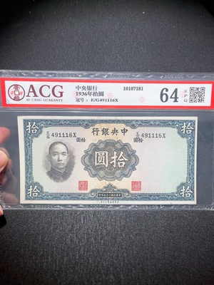 Q33914920 AICGS Graded 64 1936 Ten Yuan Banknote