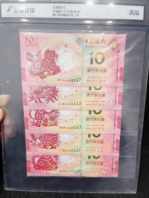 Q35155862 Macau Zodiac Commemorative Banknotes Set of Five Graded - Year of the Horse, Sheep, Monkey, Rooster, and Dog