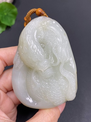 H20269427 Hetian Jade Seed Material Handheld Piece "Dragon" Total Weight Approx. (Including Chain) 132.7g Undetermined Skin Color Origin