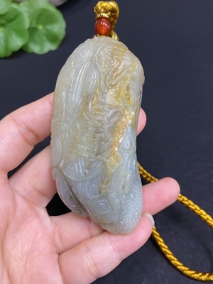 H30571676 Hetian Jade Pendant Natural Seed Material "Astonishing Brilliance" Undetermined Skin Color Formation Total Weight (Including Rope): Approx. 81.4g