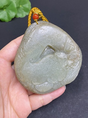 H34026942 Hetian Jade Seed Material Pendant - Year After Year Abundance - Undetermined Skin Color Cause - Total Weight Approx. 36.9g