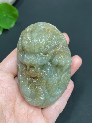 H21391394 Hetian Jade Seed Material Handheld Carving "Dragon Roaming the World" with Undetermined Skin Color Origin, Total Weight Approx. 114.9g