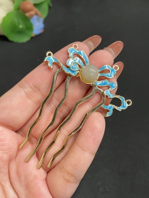 H33885791 Xiuyan jade (serpentine jade) inlaid hairpin with beads (non-Hetian jade, non-gold), total weight approx. 4.8g