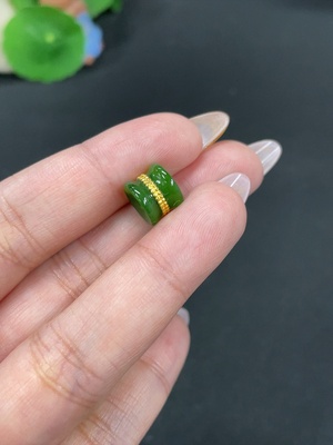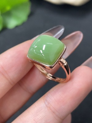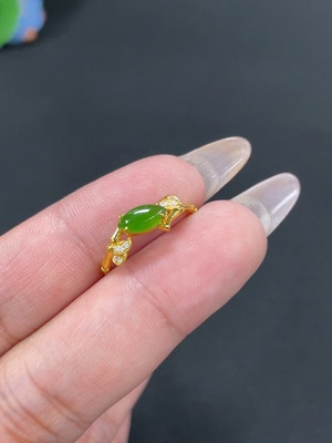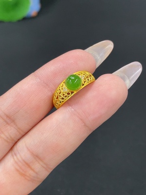 H39572629 Hetian Jade Inlaid Ring 18k Gold Size 14 Total Weight Approx. 3.4g