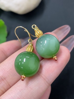 H39572716 Hetian Jade Inlaid Earrings (Marked in Red + String Non-Gold, Rest 18k Gold, Card 14mm Approx., Total Weight Approx. 9.6g)