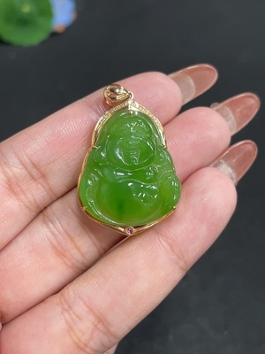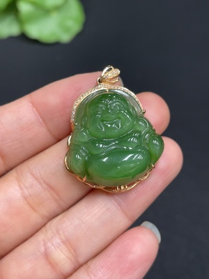 H35100564 Hetian Jade Jasper Inlaid Pendant - Buddha Figure, Total Weight Approx. 8.9g, 18k Gold