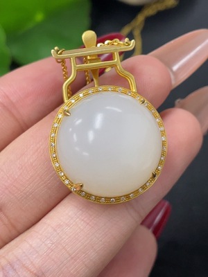 H39573263 Hetian Jade Inlaid Pendant Plain Pendant 18k Total Weight Approx.20g