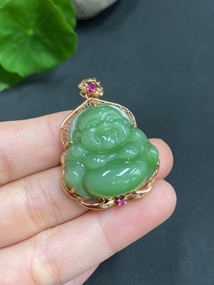 H16768428 Hetian Jade Inlaid Buddha 18K Gold Total Weight Approx. 9.5g
