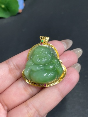 H0245851 Hetian Jade Maitreya Buddha Inlaid Pendant with Cracks, Approximately 27.93g, Non-Gold Inlaid