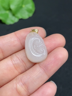 H35131267 Hetian Jade Pendant Ruyi with 18K Gold Clasp Total Weight Approx. 2.4g