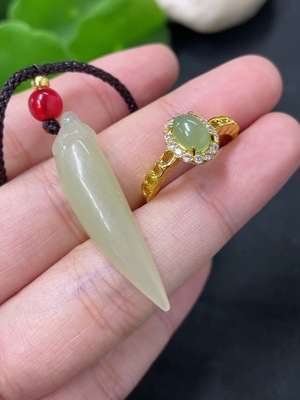 H33846296 Hetian Jade Pendant + Ring Band + Adjustable Open-End Ring Size 12 Non-Gold Total Weight Approx. 13.6g
