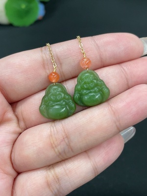 H39573446 Hetian Jade Inlaid Earrings Buddha Total Weight Approx. 4.7g Non-Gold