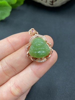 H32804638 Hetian Jade Inlaid Pendant, Buddha, Total Weight Approx. 5.7g, 18k
