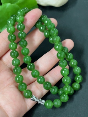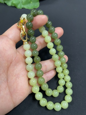 H34010592 Hetian Jade Bead Necklace, Approx. 7.6 mm, Total Weight Approx. 43.2g