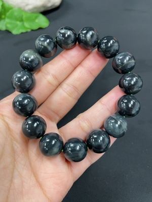 H37427162 Hetian Jade Bracelet, approx. 11.9mm beads, total weight approx. 35.2g, undetermined color origin, contains other mineral components