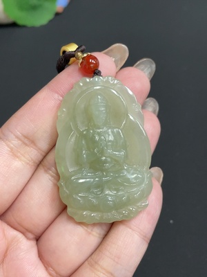 H31692608 Hetian Jade Pendant Guanyin with Other Mineral Components Total Weight Approx. (Including Rope) 74.2g