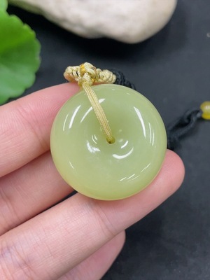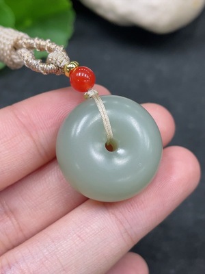 H36225910 Hetian Jade Pendant, Peace Buckle, with Non-Hetian Jade Beads, Total Weight Approx. 21.2g (Including Rope)