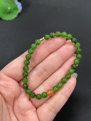 H37428403 Hetian Jade Bracelet, Approx. 5.6mm, Total Weight Approx. 9.5g, No Stamp, 18k Gold Content, Non-Hetian Jade Beads, Gold Fragile
