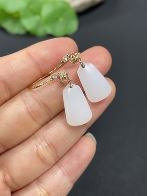 H39546248 Hetian Jade Earrings with 18k Gold Inlay, Total Weight Approximately 3.5g, Non-Diamond
