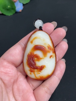 H36268577 Hetian Jade Pendant Dragon Undetermined Skin Color Cause Matching Beads Not Hetian Jade Total Weight Approx. [Including Rope] 59.5g