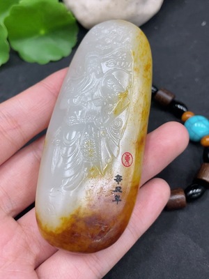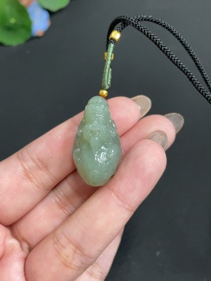 H36281097 Hetian Jade Handheld Carving - Guan Gong - Undetermined Skin Color Origin - Chain Not Hetian Jade - Total Weight Approx. (Including Chain) 110.9g