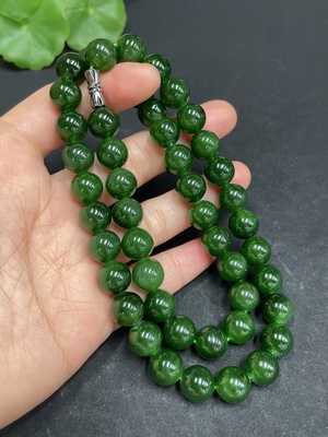 H35110215 Hetian Jade Jasper Bead Necklace, Approx. 7.8mm, Total Weight Approx. 41.5g